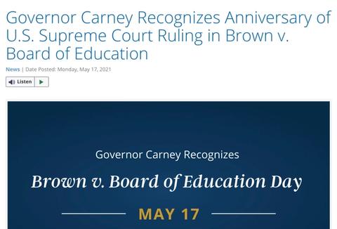 https://news.delaware.gov/2021/05/17/governor-carney-recognizes-anniversary-of-u-s-supreme-court-ruling-in-brown-v-board-of-education/
